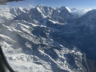 6時にバスに乗り込み搭乗機に向かった。小さめなプロペラ機だった。マウンテンフライトの場合全員が窓側に着席できる乗客数で運航されている。そして飛行ルートはカトマンズ空港を離陸した後ヒマラヤ山脈に沿って東に飛び、エベレストの近くでUターンして同じコースを飛行して戻ってくるように設定されている。そのため左右どちらの窓側に座っても往路か復路でヒマラヤの眺望を楽しむことができる。この日は乗客が少なかったので席を移動して往路も復路も窓側に座ることができた。