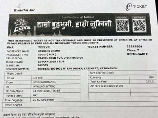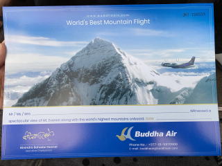 マウンテンフライトを終えてトリブバン空港に着陸したのは7時30分だった。降機の際に搭乗証明書が配られた。1時間ほどの遊覧飛行だったがI氏もK氏もとても喜んでくれたのが嬉しかった。
