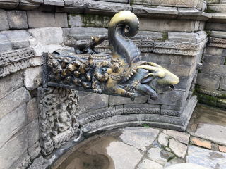 ゴールデンゲートから王宮の中に入った。王宮の奥にあるタレジュチョークはヒンズー教徒以外立ち入り禁止なので入口から覗かせてもらった。装飾がとても美しい空間だった。王の住居だったスンダリチョークでは沐浴場が見学できた。
