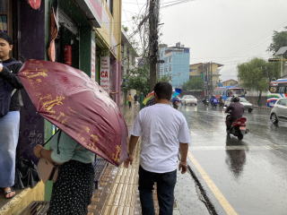 昼食をとりに雨の中出かけた