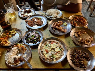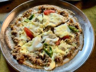 ビールを飲んでいると料理が次々と運ばれてきた。適度にスパイシーでビールのつまみに最適だった。ネワリカジャの主食はチウラという干飯だ。料理はスクティという干肉を使った料理やチョエラという肉のマリネ、サデコという野菜の和え物、魚やエビのフライなどだった。チウラと料理を交互に右手を使って食べた。現地ガイドに連れてきてもらわなければ食べることができない料理を色々食べることができてとても嬉しかった。最後に出てきた米粉で作ったピザのようなチャタマリもおいしかった。