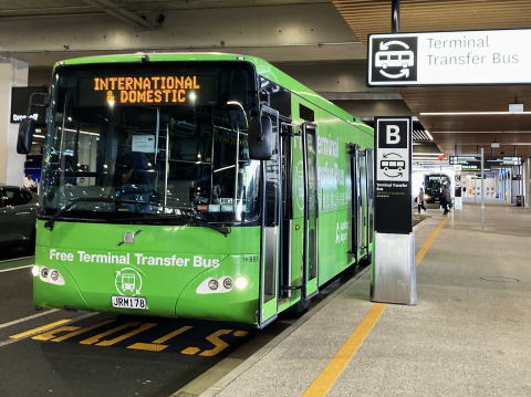 この後はロトルア行きの国内線への乗り継ぎだ。国際線ターミナル内の国内線チェックインカウンターで荷物を預け、身軽になって巡回バスで国内線ターミナルへ移動した。12時の搭乗開始まで搭乗ゲートの近くで待機した。