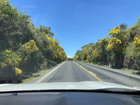 ロトルア空港内のレンタカー会社のカウンターで車を借りムルパラの町を目指して出発した。ロトルアからムルパラまでは70kmほどの距離がある。ニュージーランドの一般道の制限速度は時速100kmなので1時間かからずに着くことができる。道の両脇に咲く黄色いブルームの花を眺めながらの気持ちの良いドライブだった。
