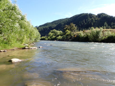 川の周囲は私有地だが釣り人が川岸まで行けるように配慮されている