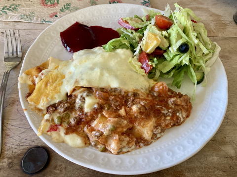 夕食のラザニアとサラダ