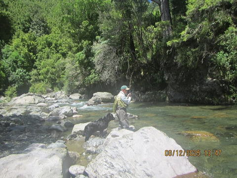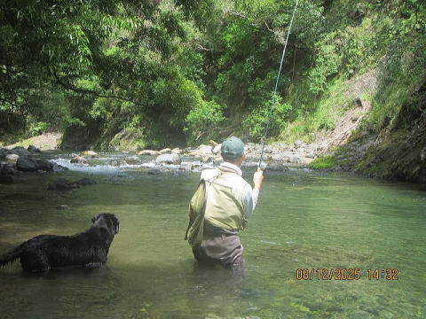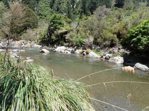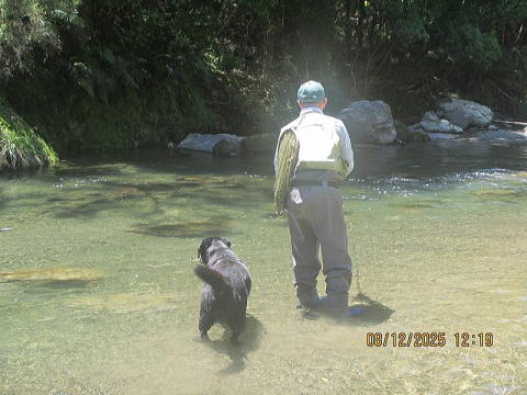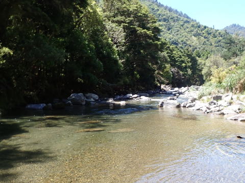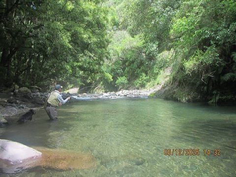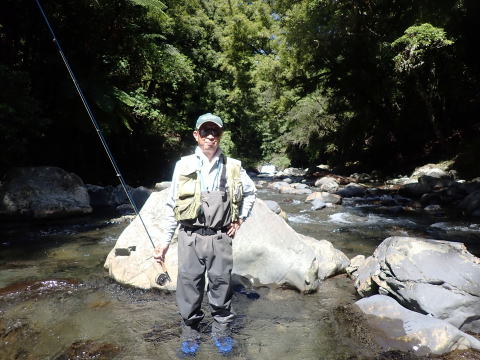 その後1時間ほどの間に3匹の魚を見つけたがフライを咥え損なったり逃げられてしまったりしてフッキングには至らなかった。初日ということでニュージーランドの釣りに身体や思考がアジャストできていない感じだった。