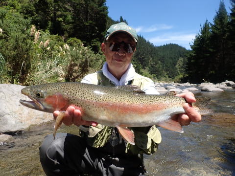 この日2匹目の魚はダブルニンフのブラインドで釣った。キャストから合わせ、ランディングまでの一連の動作をスムーズにおこなえた。ニュージーランドの釣りの感覚をだいぶ取り戻せた気がした。