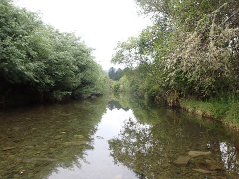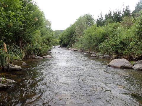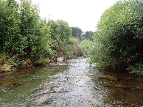 さらに釣り上がったがこの日は曇天で水中が見え辛く魚を見つけることが難しかった。時間が限られていたので合流点で竿を出すことにして川を下った。