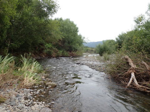 橋の下流もポイントは少なかった。魚を2匹見つけたがいずれの魚もフライには反応しなかった。やがて本流との合流点に到達した。