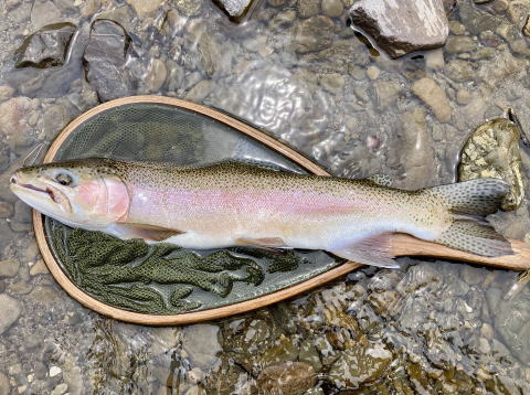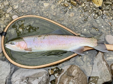 今年のラストフィッシュの57㎝のレインボートラウト