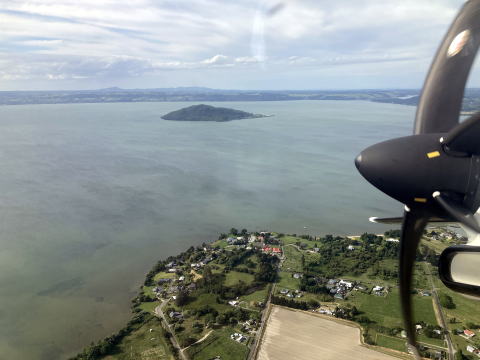 搭乗機の到着が遅れたため17時に搭乗が始まり17時30分にロトルア空港を離陸した。離陸直後は眼下にロトルア湖が綺麗に見えた。