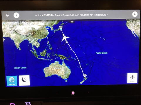 成田便は9時30分に搭乗開始となり10時30分にオークランド空港を離陸した。