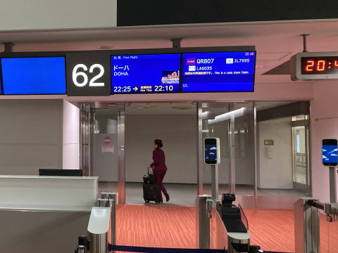 出発は7月18日。カタール航空ドーハ便の成田出発が22時時過ぎだったので16時過ぎに自宅を出た。成田エクスプレスを利用して19時前に成田空港第2ターミナルに到着した。空港内のとんかつ屋で夕食を済ませてから搭乗手続きを行った。事前にオンラインチェックインをしておいたのでそれほど待たずに手続きを済ませることができた。手続き終了後はすぐに出国して搭乗開始まで搭乗ロビーで過ごした。
