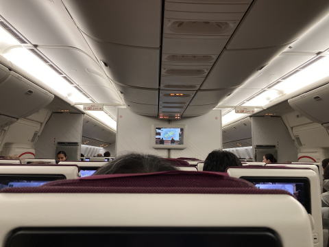 搭乗機は22時40分に成田空港を離陸した。カタールのドーハ空港までの飛行時間は約10時間だ。機内では2度の機内食を食べたとき以外はずっと眠っていた。