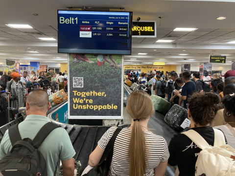 エンテベ空港到着後は降機に30分ほど時間がかかり、さらに入国審査に1時間、預入荷物の受け取りに20分かかった。到着ゲートから出るまでに2時間近くかかってしまった。時刻は17時になっていた。