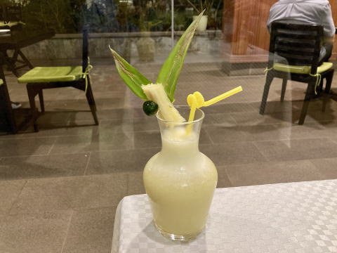 パイナップルとココナッツミルクを使った甘いカクテルだ