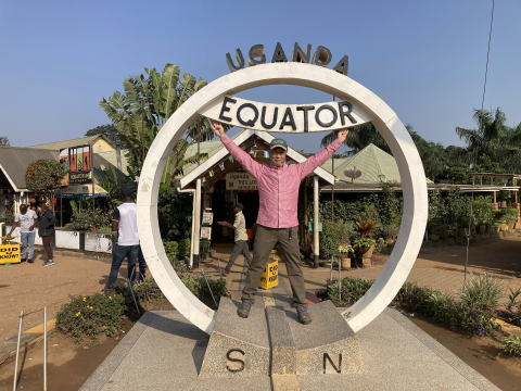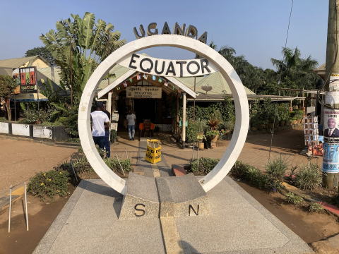 幹線道路を1時間半ほど走ると道と赤道が交差する地点があった。ウガンダは国内を赤道が通っている数少ない国の一つだ。赤道のモニュメントの周囲には土産物屋や飲食店が立ち並んでいた。ここで小休止した。