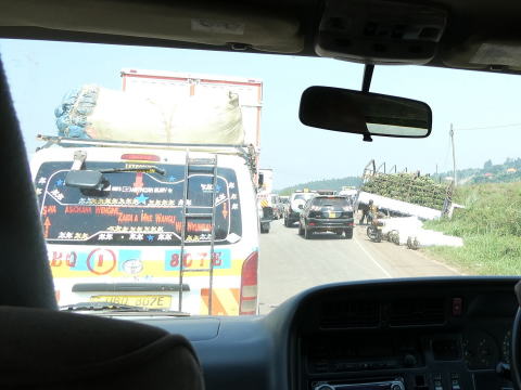 エンテベからムブロ湖国立公園までは300㎞ほどだ。エンテベの街外れから未舗装の道を30分ほど走ってウガンダ南西部に通じる幹線道路に出た。