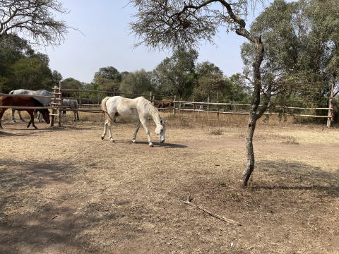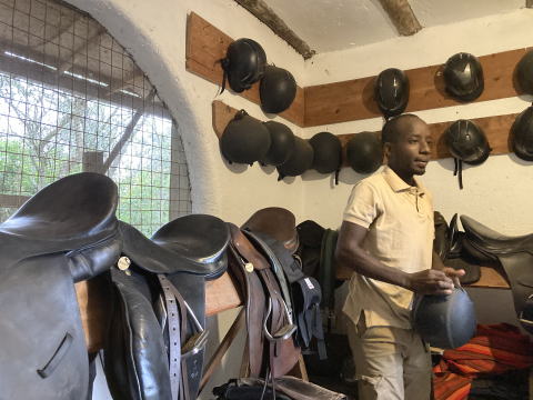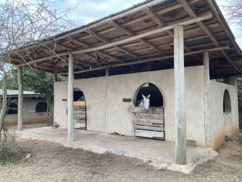 乗馬サファリはミヒンゴロッジが運営しているアクティビティーだ。厩舎は丘の中腹にあった。歩いても15分ほどで着けると言われたが帰りが登りでしんどそうなのでアッバスに車で送迎してもらうことにした。