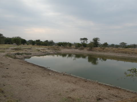 時々休憩しながら1時間ほどかけて水場となっている貯水池までやってきた。最初は緊張と不安が表情に表れていた妻もこの頃になるとだいぶ余裕が出てきたように見えた。ここで折り返して丘の斜面を通って厩舎に引き返した。