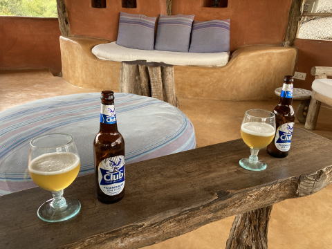 乗馬サファリを終えアッバスにロッジまで送ってもらった。時刻は10時40分だった。馬上にいただけだが汗をかなりかいたのでまずシャワーを浴びた。その後は昼食まで昨日と同じタワーの2階でクラブビールを飲みながらダラダラと過ごした。アフリカの大自然の中でこうした時間を過ごせることがとても幸せだった。妻も乗馬の緊張から解放されてとてもリラックスしていた。