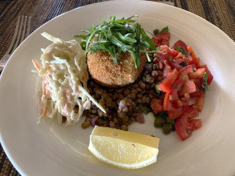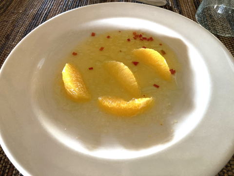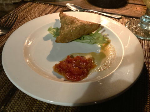 昼食は13時からの予定だったが着席しても料理がなかなか運ばれてこなかった。少しするとサブマネージャーから前菜に使う予定だったアボカドがまだ届かないので申し訳ないがアボカド抜きの前菜で昼食を提供させてもらうとの説明があった。これも僻地のロッジならではのハプニングだ。オレンジだけのサラダもなかなかおいしかった。昼食後はコテージに戻って夕方まで休憩した。