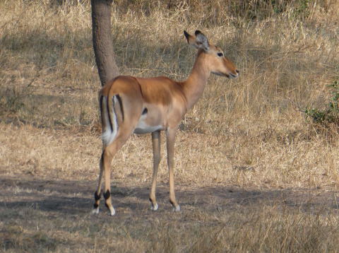尻側の後ろ脚の付け根が黒いのがインパラの特徴だ