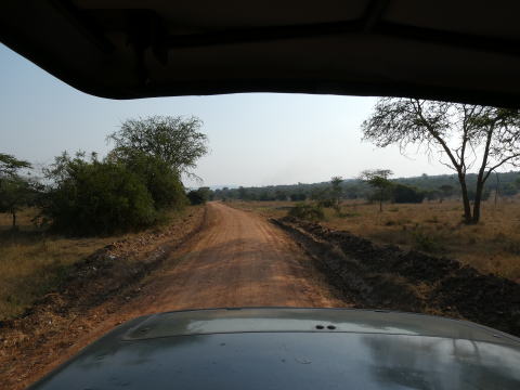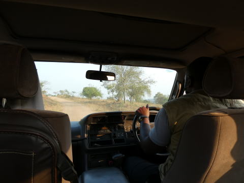 16時に夕方のゲームドライブに出発した。国立公園のゲートでは入場手続きをする端末のトラブルで20分ほど待たされた。午後は日が陰らないと動物の動きが活発にならない。まだ日が高かったので待たされてもさほど気にならなかった。手続きが終わるまでゲートの周辺にいる動物や鳥を撮影していた。