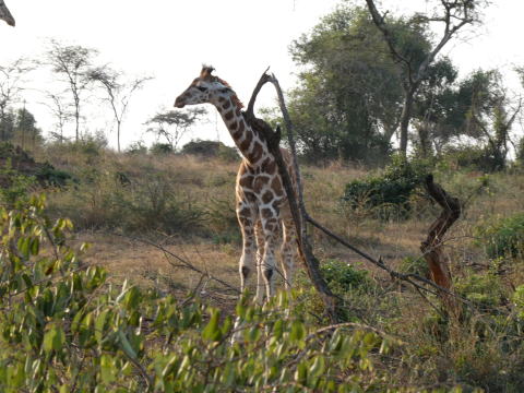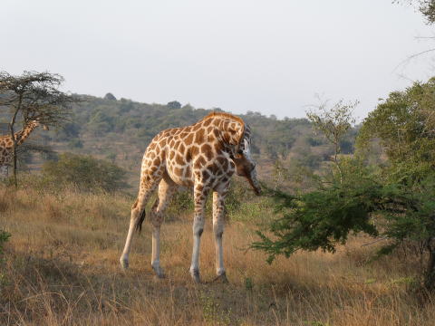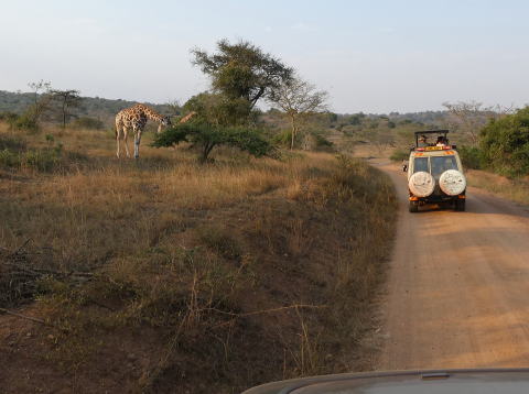 この日は気温が高かったせいか動物の姿が少なめだった。それでも帰り道ではキリンの群れと至近距離で遭遇することができた。キリンはしぐさに愛嬌がある。とてもフォトジェニックな被写体だった。写真や動画をたくさん撮った。18時30分にロッジに戻った。