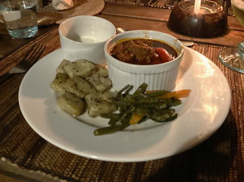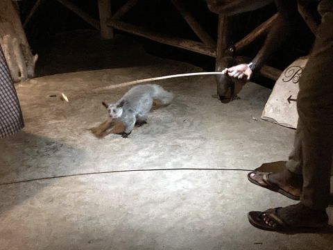 この日の夕食は20時からだった。コテージから食堂に行くために暗い階段をトーチで足元を照らしながら降りていると進行方向から階段を上ってくる小動物と遭遇した。小ぶりな猫くらいの大きさの灰色の動物だった。我々に気付くと立ち止まり、少しして来た道を引き返していった。スマホで撮影した画像をスタッフに見せるとハイラックスだと教えてくれた。名前だけは知っていたが実物を見たことがない動物だった。珍しい動物に出会えて嬉しかった。