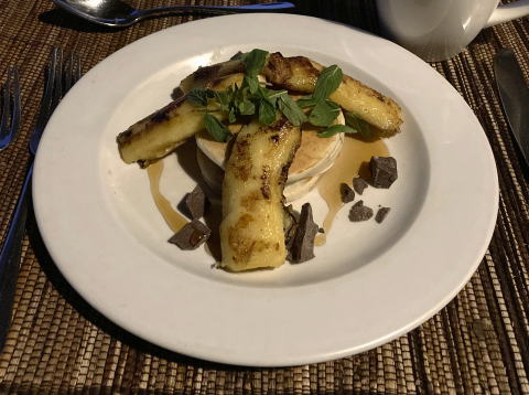 5時30分に起きて荷物をまとめ、6時30分から朝食をとった。この日はバナナパンケーキにした。チョコチップとキャラメルソースも入っていて甘くておいしかった。