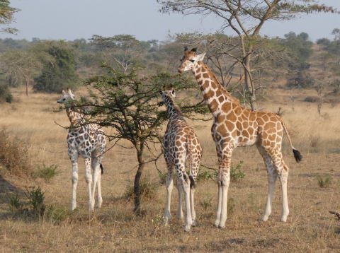 徒歩で近づいて眺めるキリンの群れ