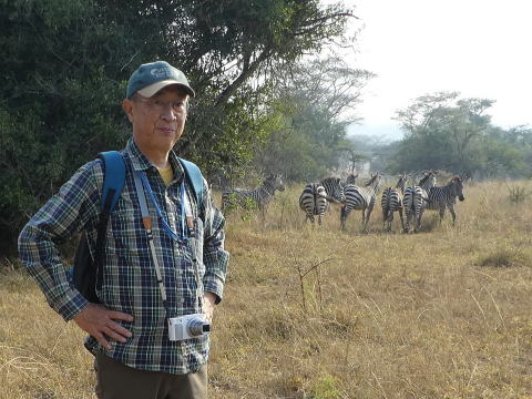 シマウマをバックに記念撮影