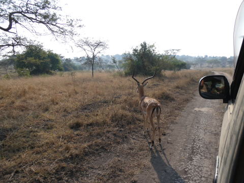 道路脇のインパラに見送られてムブロ湖国立公園を後にした