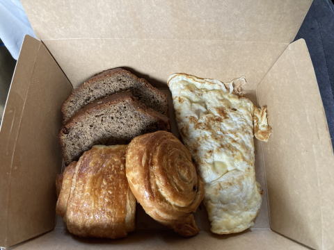 2時間ほど走ってガソリンスタンドの駐車スペースに車を停めて朝食をとった。時刻は8時だった。朝食は前日ホテルにお願いしてパックブレックファストを作ってもらった。シンプルだが空腹を満たすには十分だった。
