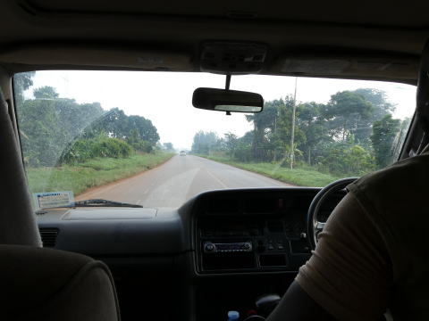 市内はまだ暗かったが交通量は既に多かった。今にも渋滞が始まりそうだった。アッバスが早めに出発したがっていた理由が分かった。20分ほどでウガンダの西北部に向かう幹線道路に入った。この頃から霧が立ち込めてきた。一番酷い時は視界が200mほどになってしまった。アッバスに安全運転に徹するように声を掛けた。