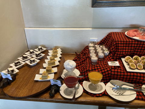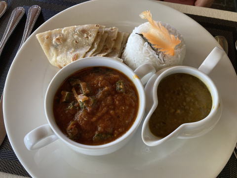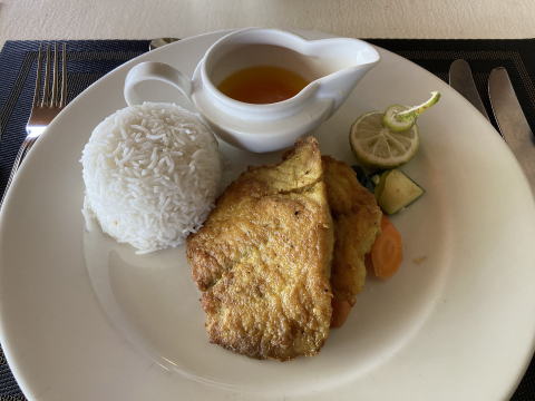 2階の食堂に上がって昼食をとった。このロッジの食事は3食ともビュッフェスタイルが基本だがこの日の昼食はサラダ、スープとデザートがビュッフェでメインはメニューから選ぶようになっていた。僕はティラピアのソテーを妻はカレーを注文した。本格的なインドカレーがとてもおいしいと妻が喜んでいた。