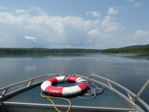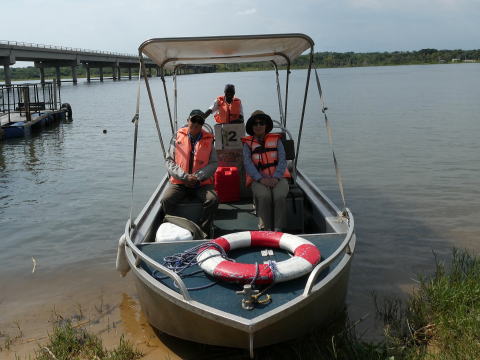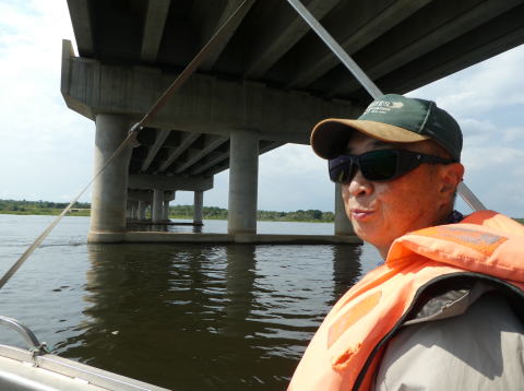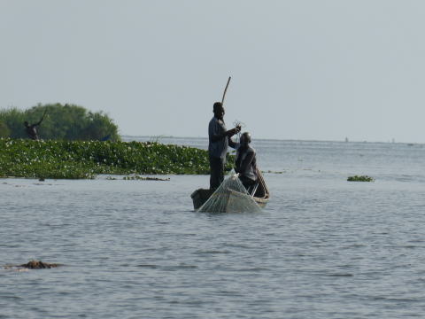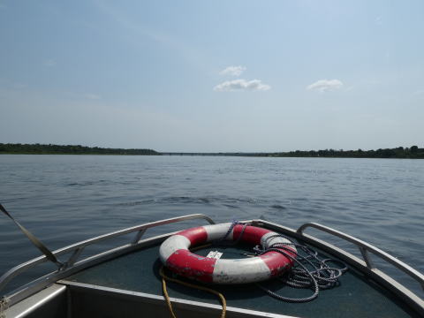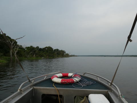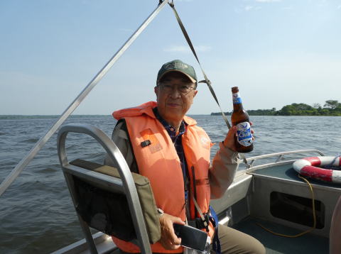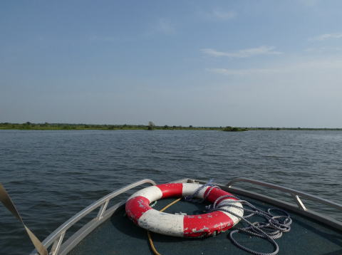 1時間ほど下ってアルバート湖河口部のデルタまでやってきた