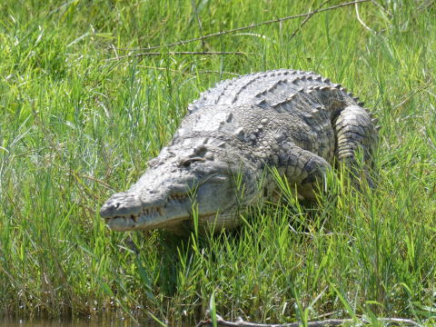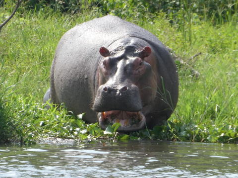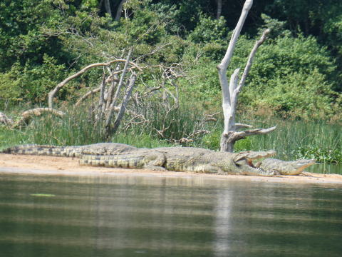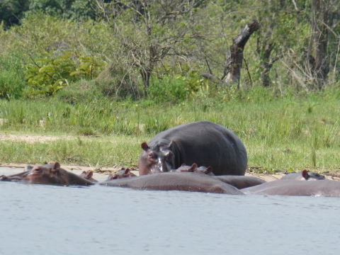 まず上流にあるマーチソン滝を目指した。釣りの時は全速力で移動するがこの日は景色や動物を眺めることが目的だったので速度を落として航行してもらった。カバやクロコダイルがいる場所では近寄ってボートを停め、じっくり眺めたり写真を撮ったりしながら滝を目指した。