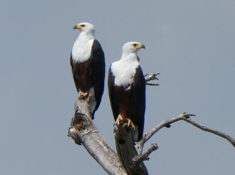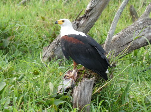 17時を回ったのでゆっくり遡航して船着き場に戻ることにした。帰路も岸辺に動物を見かけると速度を落として観察した。アフリカゾウやフィッシュイーグルなどを見ることができた。18時過ぎに船着き場に戻った。