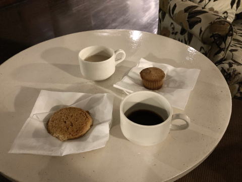 前夜の帰りが遅かったので前日より30分出発を遅らせて6時30分にゲームドライブに出発した。その前にロビーでスコーンとコーヒーでお腹を満たした。