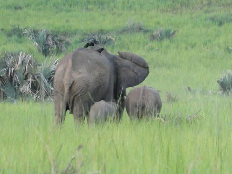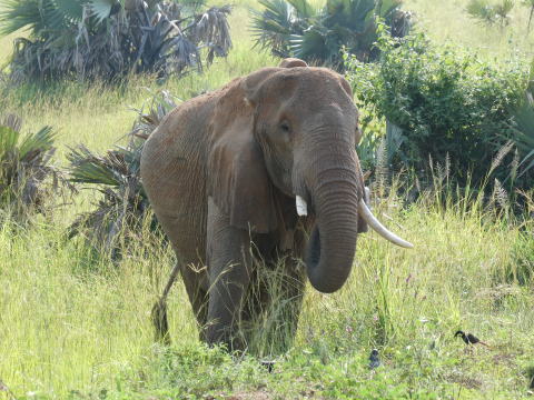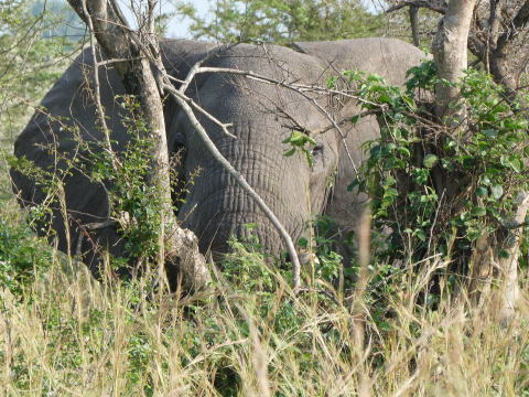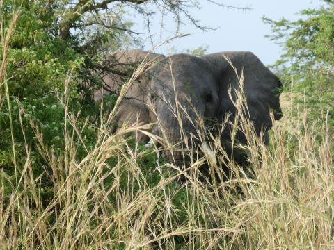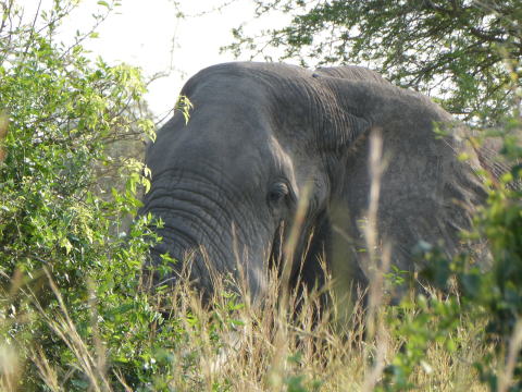 デルタからの帰路では草藪に潜むアフリカゾウを見ることができた。彼らは気配を消すのが上手だ。草藪に潜んで我々を見つめていた。