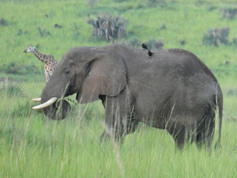 その後はジャクソンやイボイノシシ、タパスモンキー、キリンなどの動物を見ながらサバンナをドライブした。最後にアフリカゾウの家族を見てロッジに戻った。