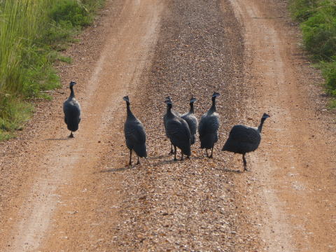 この日は鳥の姿をよく見かけた。ミナミジサイチョウやカミナガシャコ、トカゲノスリ、ホロホロチョウなどを撮影することができた。