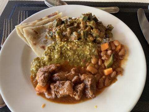 昼食の開始時刻は12時30分だ。開始後すぐに食堂に出向いた。この日もカレーがおいしかった。昼食にもデザートが用意されている。この日は3種類食べてしまった。