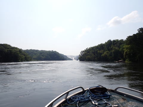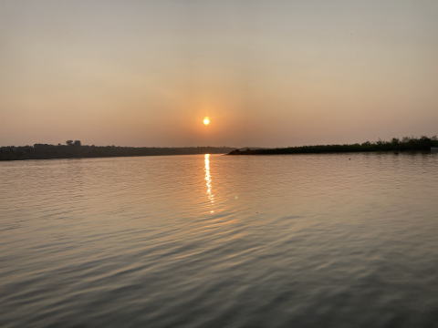 前日にスタンレーと打ち合わせて、この日の釣りは7時過ぎ開始15時過ぎ終了という予定にしてあった。6時30分に朝食をとり7時にロッジを出発した。ナイル川に昇る朝日が美しかった。
