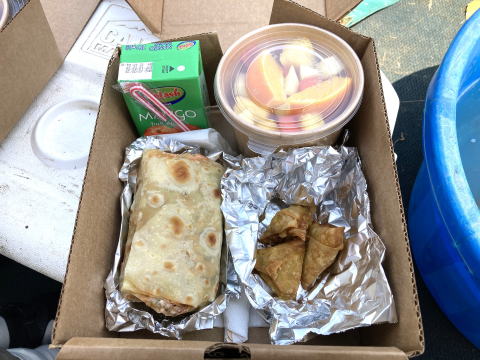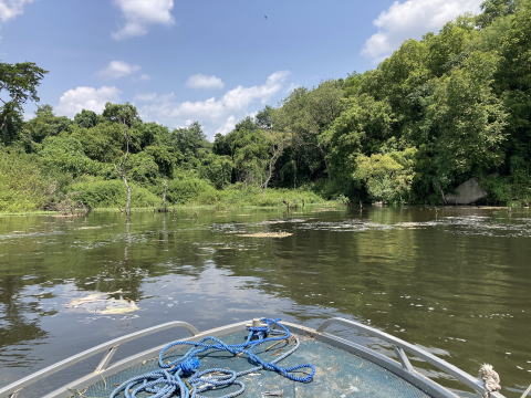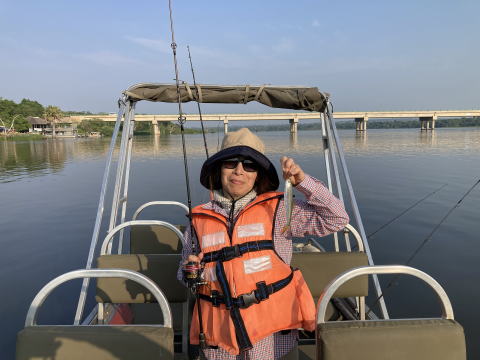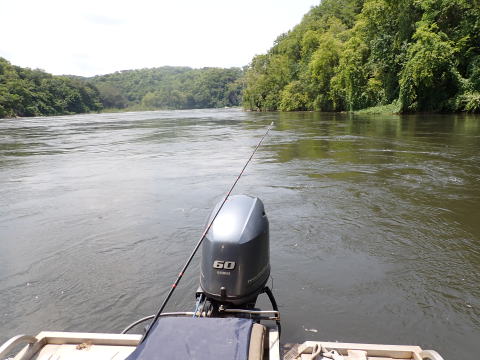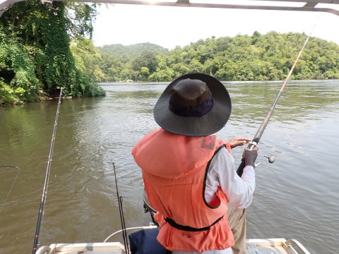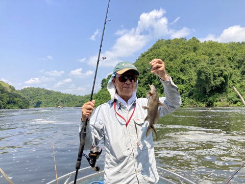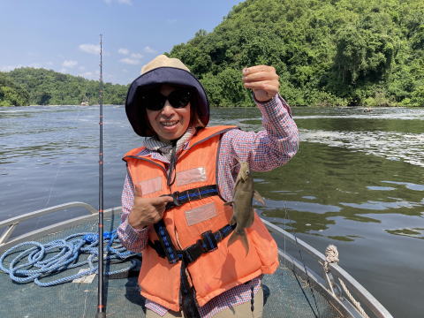 このポイントで釣りをしている時にリバークルーズのボートがランチボックスを届けてくれた。最初のポイントに戻ってボートの上で食べた。食事中も釣りは続けたが反応はなかった。