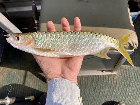 船着き場のすぐ上のワンドで餌に使うアンガラを釣った