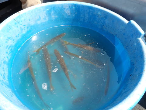 アワカ釣りのポイントは岸際の緩い流れだ。スイートコーンを針に付けたウキ釣りの仕掛けを流れに乗せればアタリがすぐに出るはずだった。しかしこの日は魚が少ないのかしばらくアタリが出なかった。少しずつ場所を変えて竿を出し、何とか釣ることができた。
