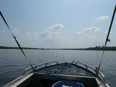 7時15分に出船した。まず船着き場のすぐ上のワンドでナイルパーチ釣りの餌となるアンガラを釣った。釣り方はミミズを餌にしたウキ釣りだ。この釣り方なら釣り初心者の妻も釣りやすい。早速3人で釣り始めた。釣りを始めるとすぐに妻の竿にアタリがあった。最初にかかった魚はボートの中に取り込む際にバレてしまった。だがその後はコツを掴んで一人でしっかりキャッチしていた。とても嬉しそうだった。2時間近くここで釣りをした。